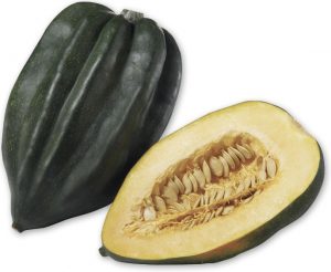 Courge poivrée (courgeron) Chair peu fibreuse jaune orangé pâle. Goût légèrement poivré. La purée de courge poivrée est un délice: Couper en deux, cuire à 350°F pendant environ 60 minutes, réduire en purée, assaisonner au goût. Peut être gratinée. Remplace la pomme de terre. |