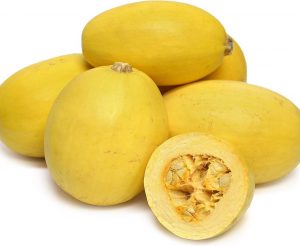 Courge spaghetti Chair pâle qui se défait en filaments lorsqu’on la gratte avec une fourchette après la cuisson. Saveur douce s’apparentant à celle des courges d’été. Couper en deux sur le sens de la longueur, enlever les graines, cuire à 350°F pendant 30-45 minutes et servir avec une sauce à spaghetti. |